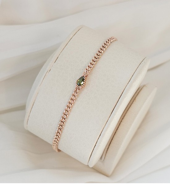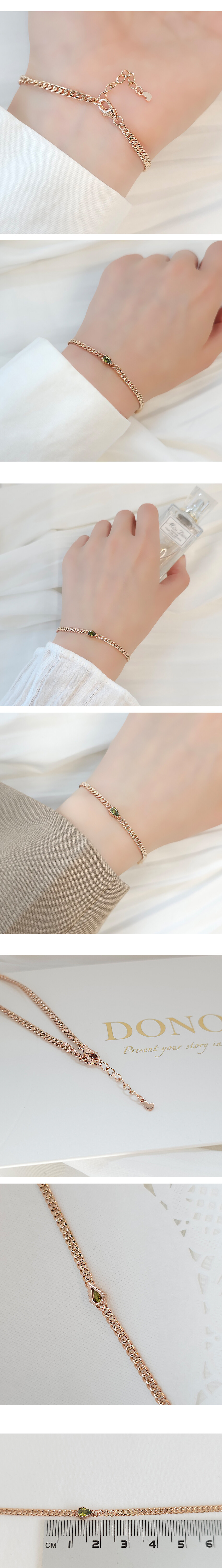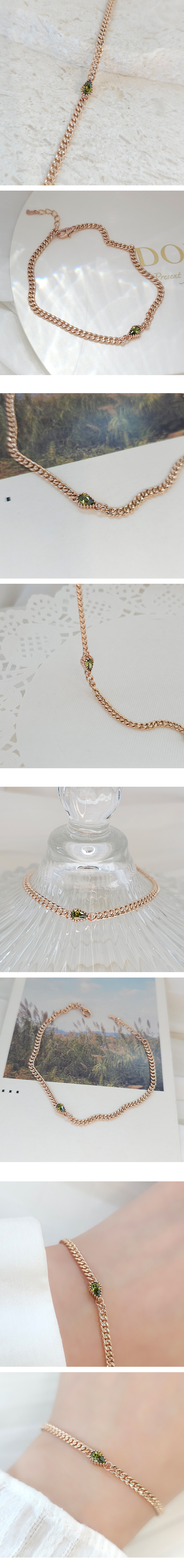 페리도트 물방울큐빅 할로우 체인 팔찌